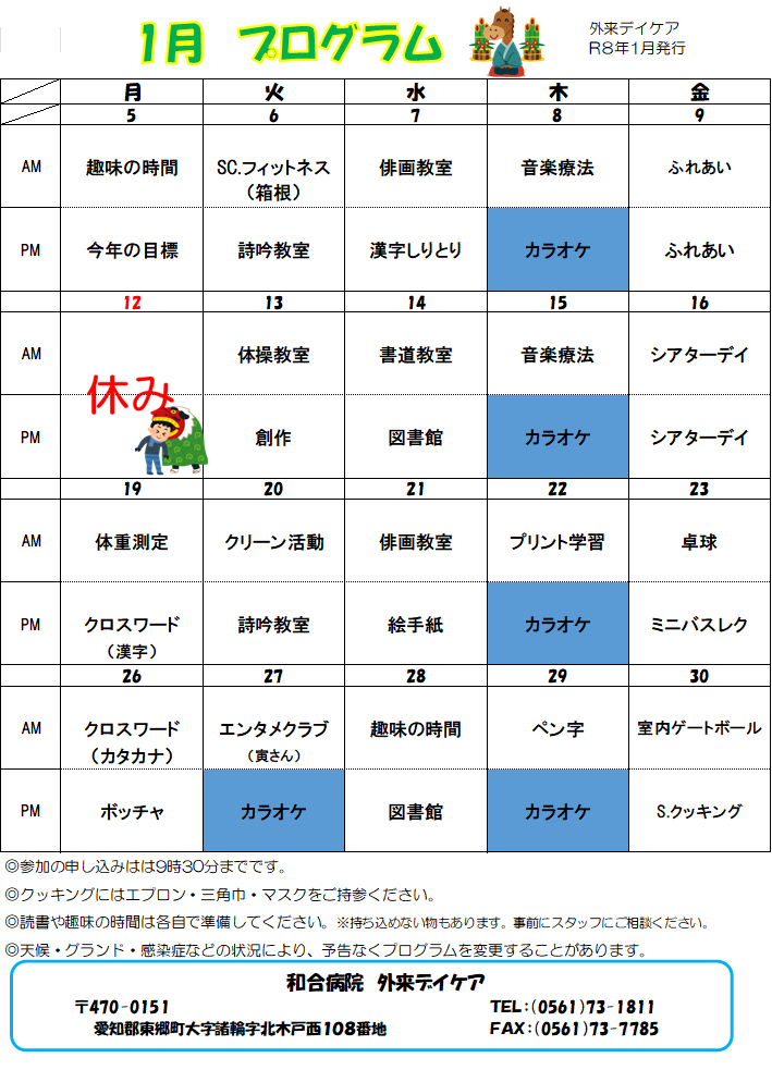 デイケアだより 令和8年1月のプログラム