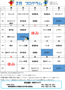 デイケアだより 令和8年2月のプログラム