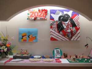 デイケアだより 新年の創作 クリスマスが終わり、年末ムードが高まってきました。今回は凧あげと陶芸作品のコラボです。貼り絵でつくった巨大凧が見事ですし、陶芸は作者一人一人が丁寧に仕上げた作品ばかりで見ごたえがありますよ。 和合病院へお越しの際には、ぜひ作品コーナーをご覧になってください。 2025.12.26