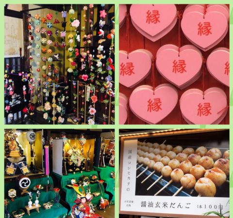 ハート型の絵馬、美味しいお団子、五月人形の展示もしており、