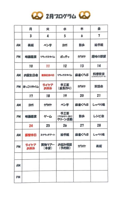 2月のデイケアプログラムです💝